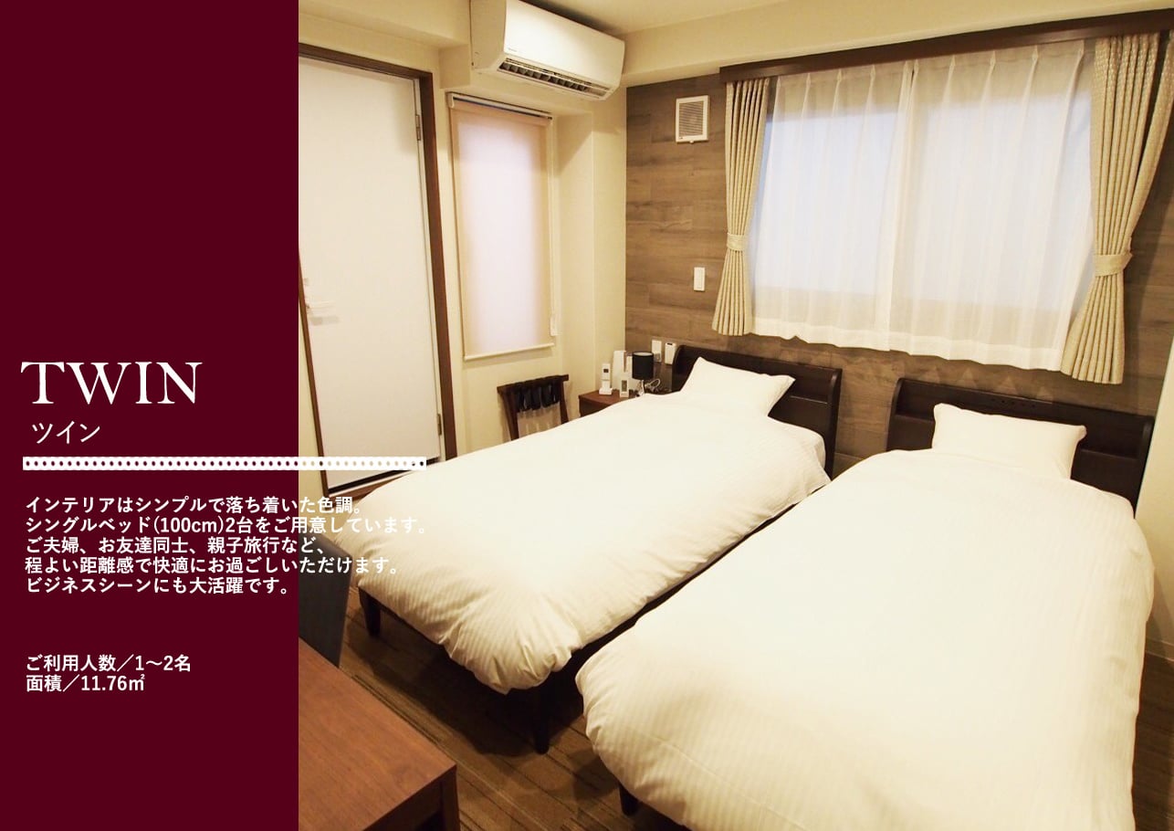 ビジネスホテル特有の窮屈さを感じられないよう、広々とした空間をご提供。