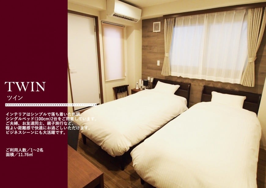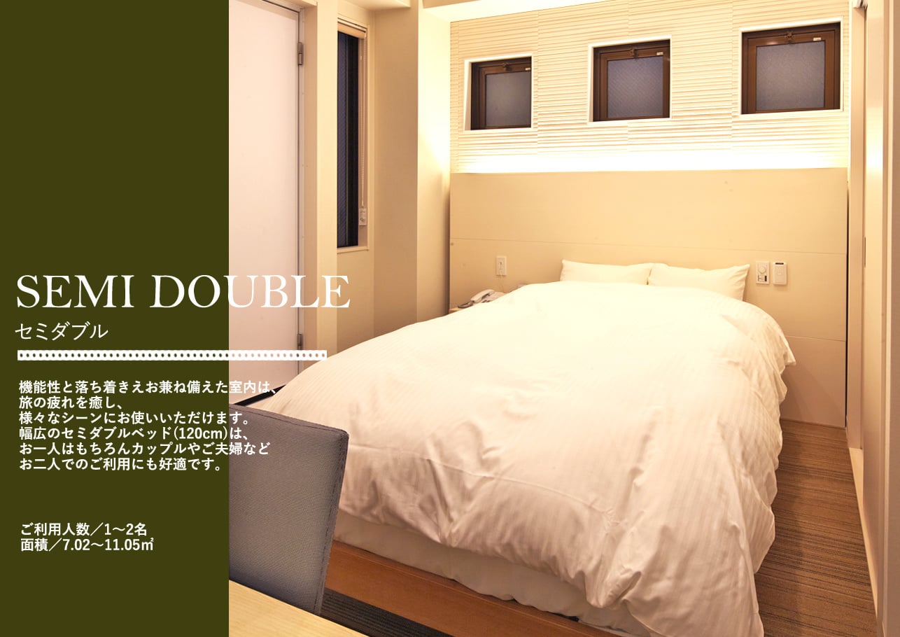 ダブル、ツイン、セミダブルルームをご用意。